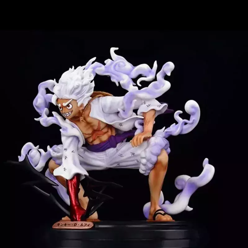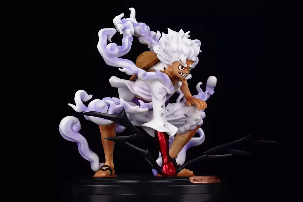 Design: Inspirado no visual estiloso e poderoso de Luffy Gear 5, com detalhes minuciosos que refletem sua transformação lendária.