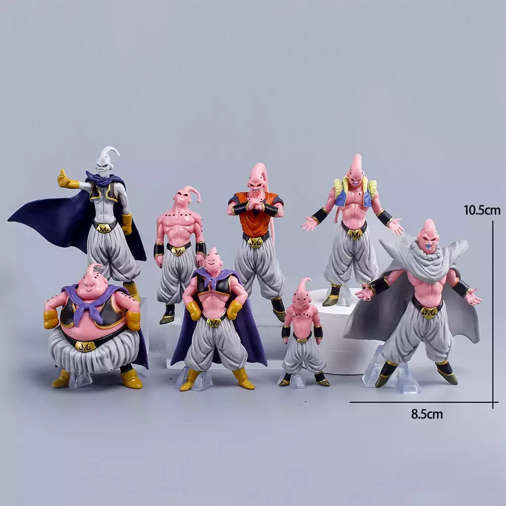 Quantidade: 8 peças, representando todas as transformações do Majin Buu, desde a forma mais doce até a mais poderosa.
