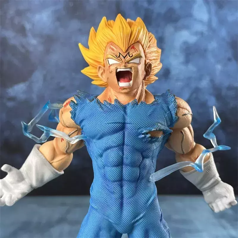Design fiel: Captura o visual marcante do Majin Vegeta, incluindo os detalhes de sua aura e expressão feroz.
