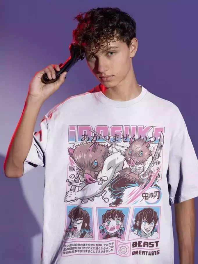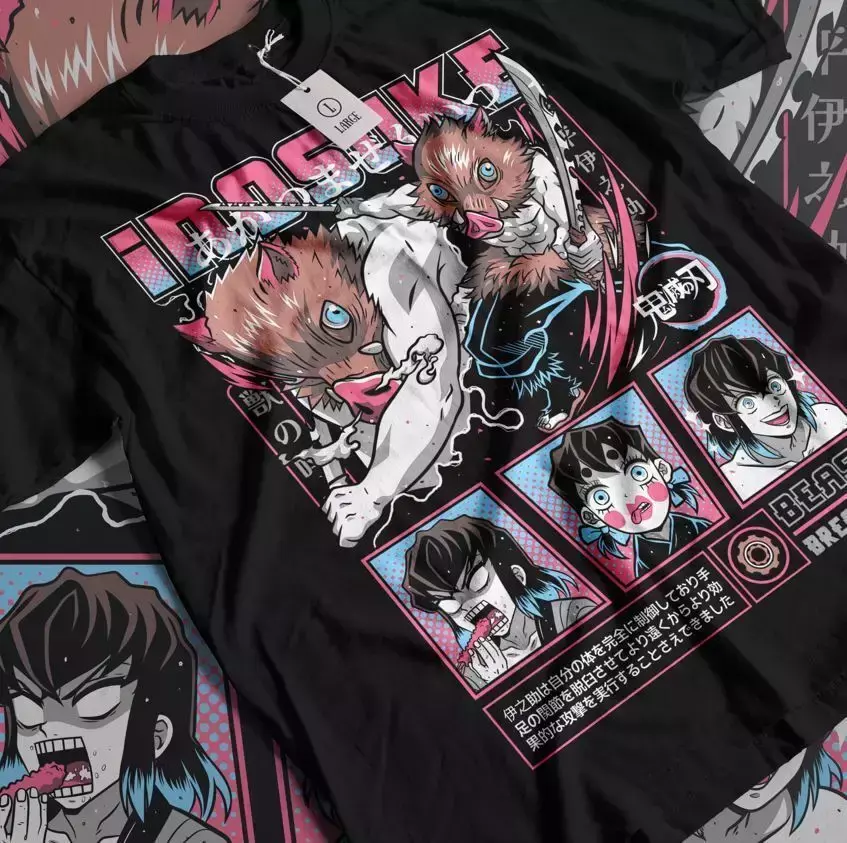 Use a Respiração Da Fera e ataque seus inimigos com a Camiseta Inosuke, uma peça que une conforto, estilo e a força do personagem mais selvagem do anime!